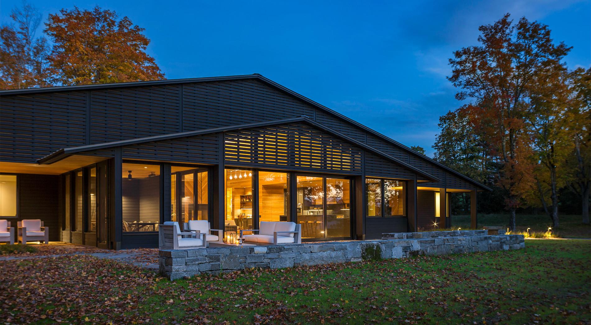 The same family has owned this upstate New York property for four generations. It’s a stunning, 5-acre site defined by two existing boathouses, a tree-lined carriage road, and a vintage waterfront cabin. They would never want to change the character of their beloved vacation compound, but something had to be done about the main residence, a dilapidated and structurally unsound building.