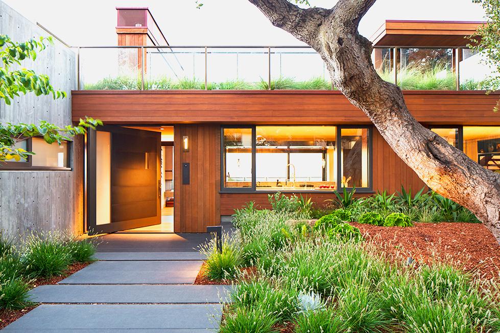 On the edge of a wooded bluff in a quiet neighborhood of the San Mateo hills sits The Terrace House; nestled on a property surrounded by sweeping vistas of the San Francisco Bay and a view of San Francisco to the north and the East Bay hills as they range south. This LEED Gold certified home was designed by Jim Miller, AIA at Oculus (with interiors by Jay Jeffers).
