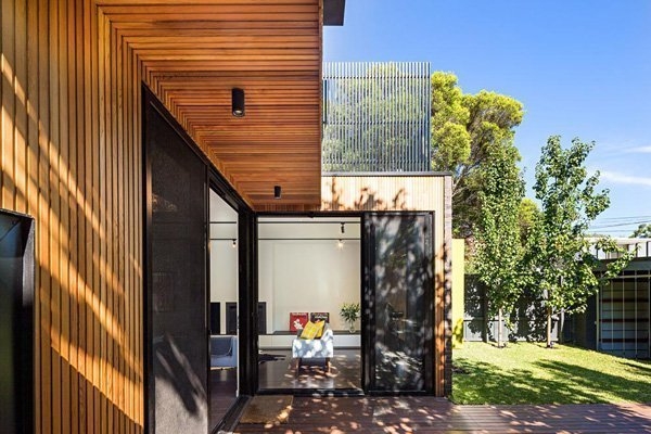 With that in mind, the biggest wow factor about this house is the composition of textured brick and Western Red Cedar screen cladding that carries over into part of the side fence, right beside the sidewalk.