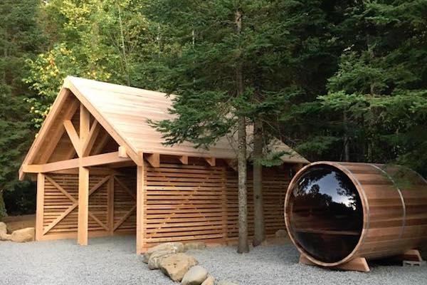 width= It was an ambitious building plan for design duo and TV hosts Colin McAllister and Justin Ryan – three projects in just three days. A two-car timber-frame carport, space-defining pergola and circular outdoor sauna were the trio of projects put together at Colin and Justin’s cabin at Drag Lake in Haliburton, Ont. Thanks to Western Red Cedar and a team of building pros, the projects went off – mostly – without a hitch.